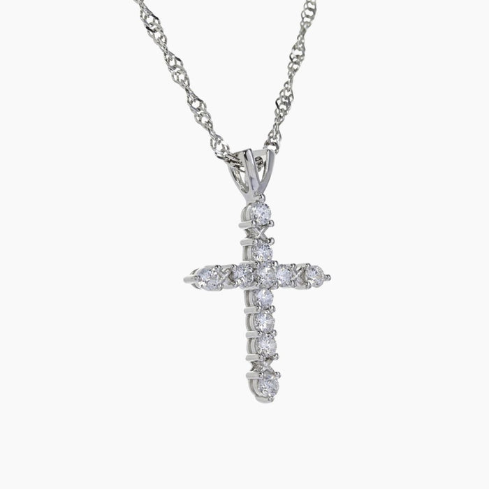Our beautiful CZ Crystal cross pendant is perfect for any occasion. The brilliant CZ crystals are arranged on a sterling silver cross and catch light from every angle. The simple beauty of the cross, matched with its undeniable sparkle makes this pendant a must-have in your collection.