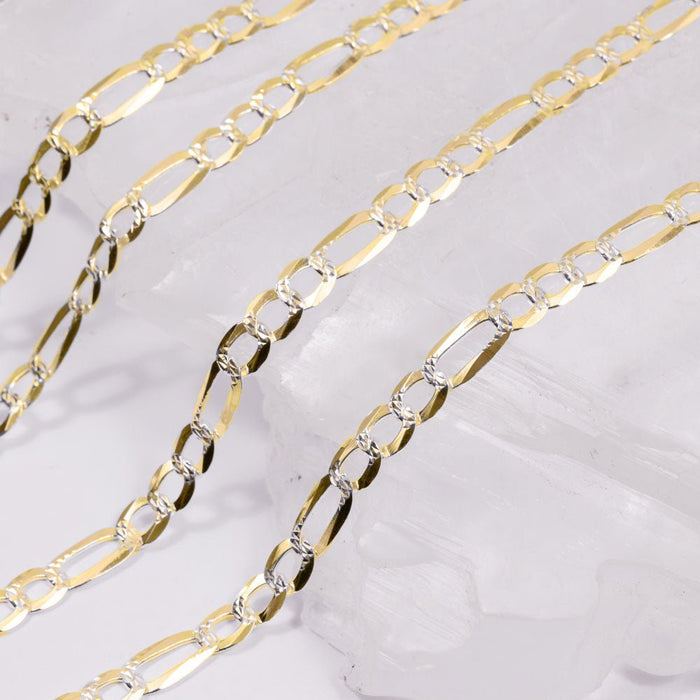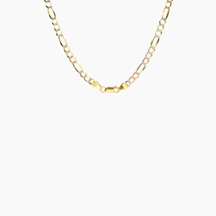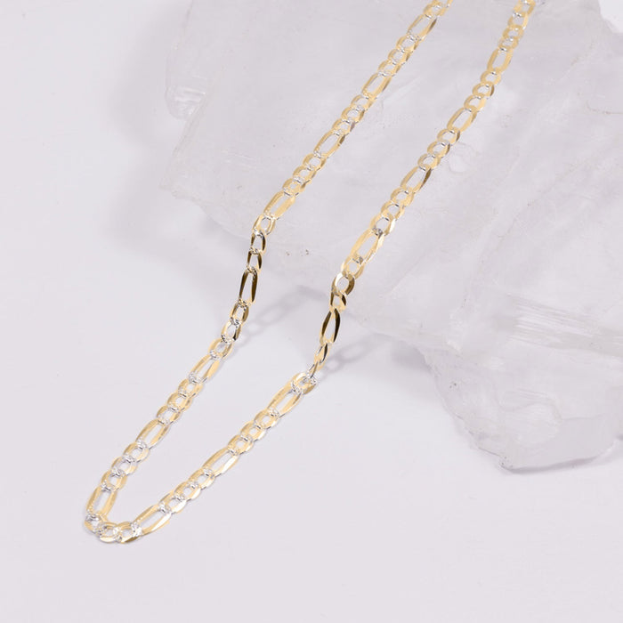 This Figaro unisex chain necklace is the perfect way to stand out in the crowd! Crafted with sterling silver and then finished in 14 carat gold, this always on-trend, two-toned chain will make a lasting impression.