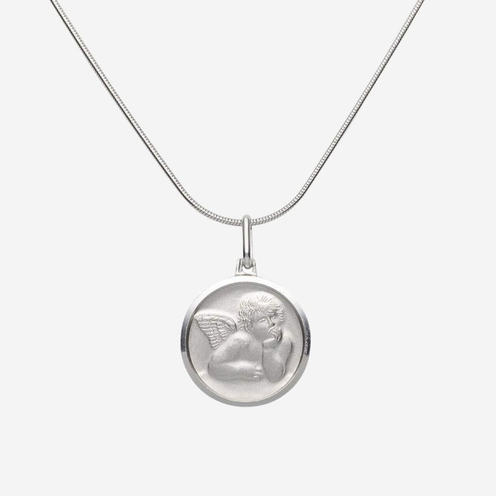 A Roma classic, the Guardian Angel Medallion is meant to remember someone who's no longer with us on Earth. Made of sterling silver with a rhodium overlay, this piece keeps loved ones close to the heart.