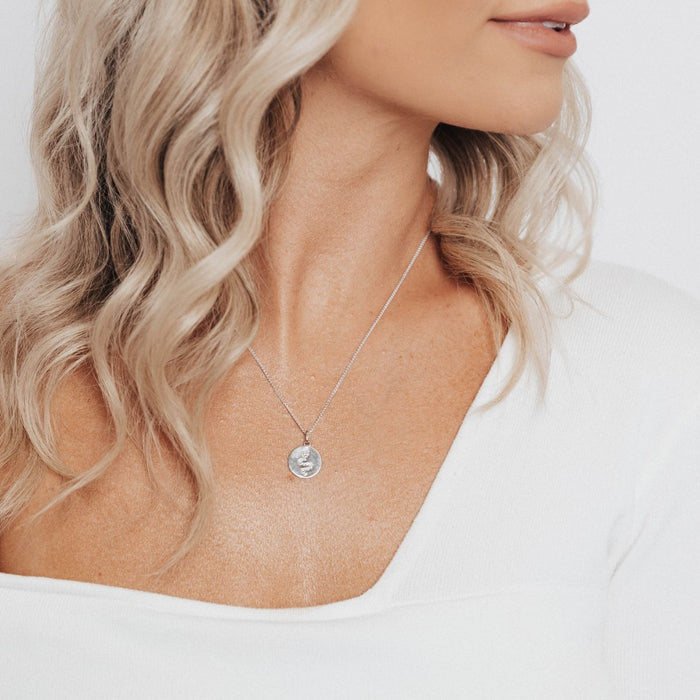 The symbol of a serpent has a long history of representing health, rebirth, wisdom, protection and many others. The disc has White Cubic Zirconia embedded in the serpent shape. This unique medallion will spark the attention of anyone who sees it.
