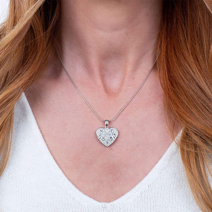 Shimmering Swarovski crystals have been arranged in a heart shape to give this pendant a classic elegance.