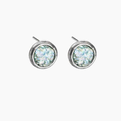 Roman Glass Patina Small Round Stud Earrings in Hammered Sterling Silver